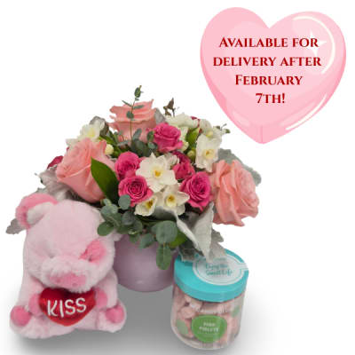 You can order now—look for the heart on the image to see which arrangements are available for delivery beginning February 7th.