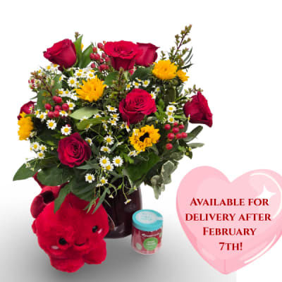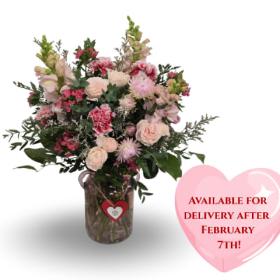 You can order now—look for the heart on the image to see which arrangements are available for delivery beginning February 7th.
