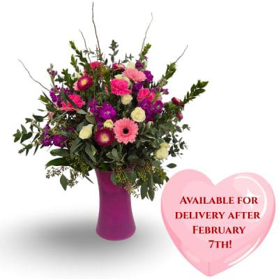 You can order now—look for the heart on the image to see which arrangements are available for delivery beginning February 7th.